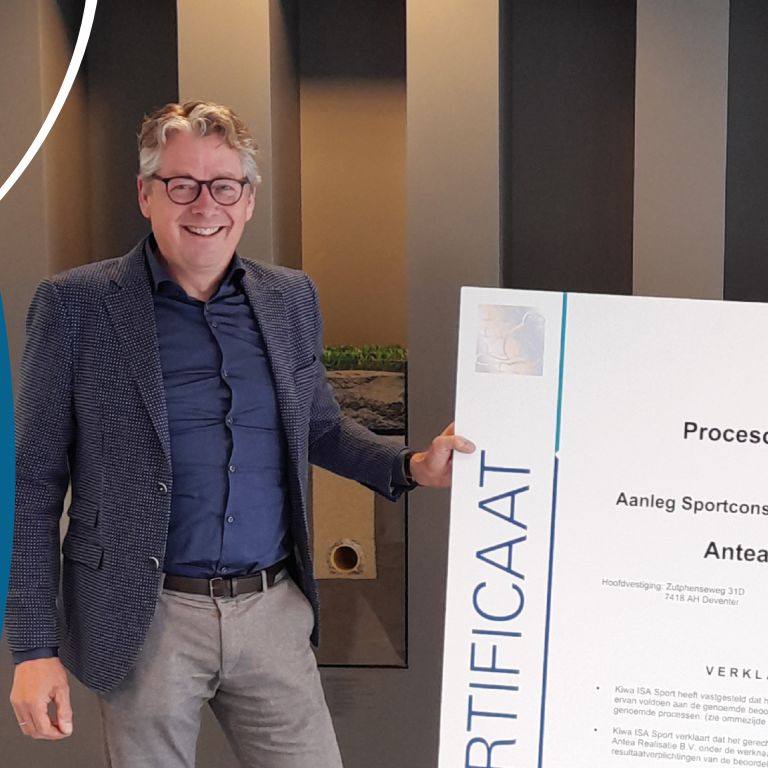 Zowel Antea Sport als Kiwa ISA Sport is zeer content over de inhoudelijke meerwaarde van de procescertificering voor sportvelden. Bij deze certificering beoordeelt Kiwa ISA Sport jaarlijks de processen waaraan Antea Sport zich committeert. Daardoor ontstaat voortdurende kwaliteitsverbetering en weten de opdrachtgevers van Antea Sport zich verzekerd van topkwaliteit velden.